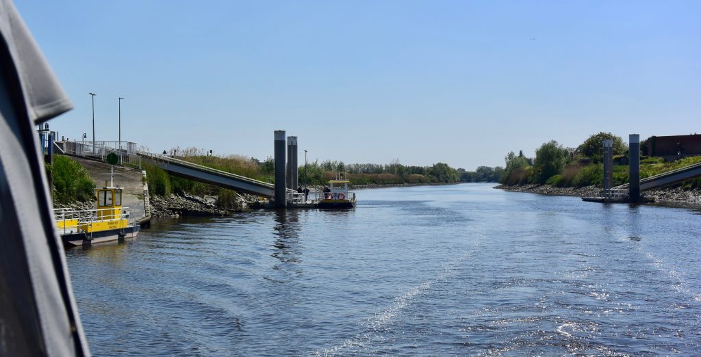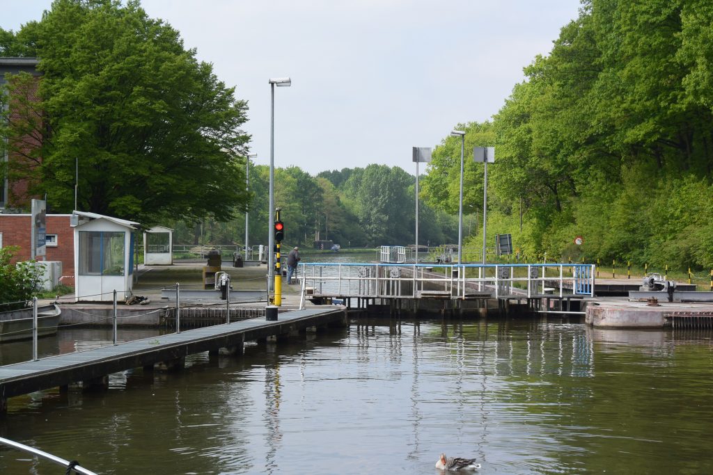 Das Tagesziel ist das ca. 38 km entfernte Turnhout in der Provinz Antwerpen. Kurz nach dem Start erreichen wir die erste belgische Schleuse. Die Anmeldeprozedur zieht sich ein wenig. Der Schleusenwärter ist sehr freundlich, aber bis er alle Daten (bei Ersterwerb einer Vignette für Belgien notwendig) in seinen PC gehackt hat, vergeht schon mal ein Weilchen. Das Ganze im Kauderwelsch holländisch, deutsch und englisch.