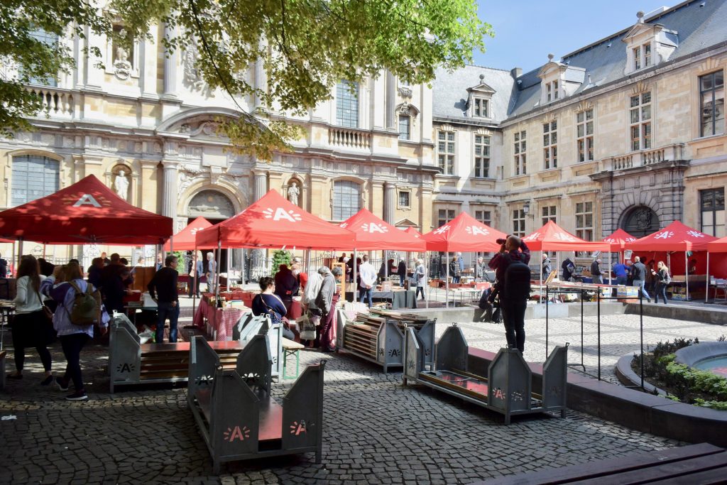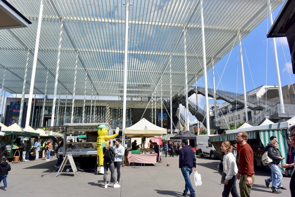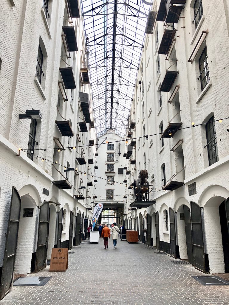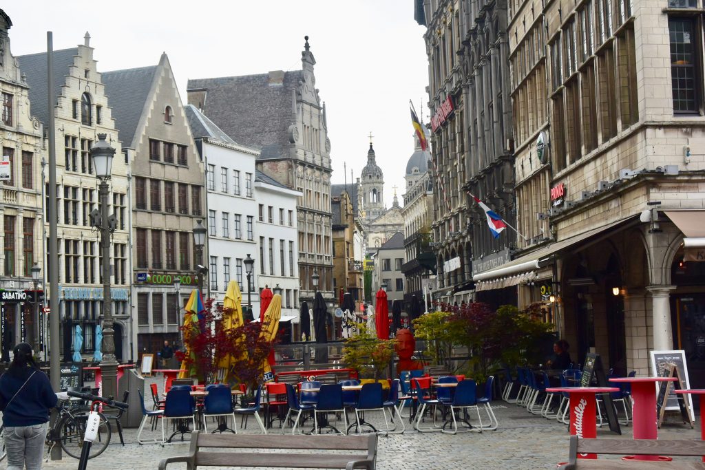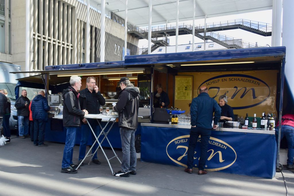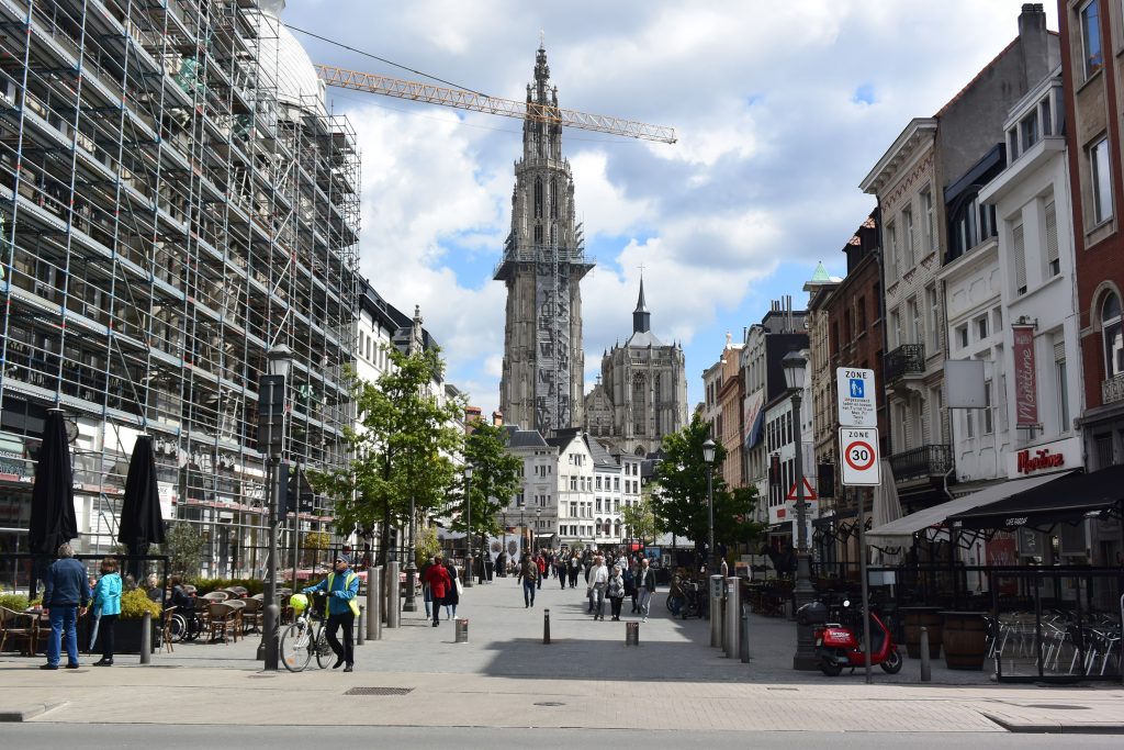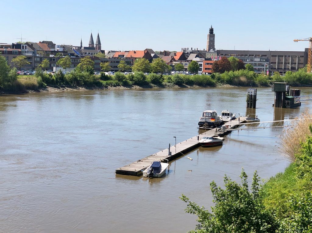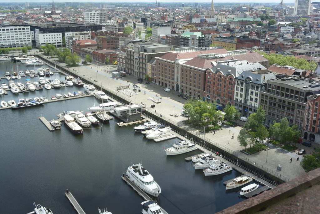 Im Hafen von Turnhout, gegen 18.15 Uhr, wird es eng mit unseren Einkäufen. Aber Aldi sei Dank (ist nur ein paar Schritte vom Hafen entfernt und schließt um 19.00 Uhr) kommen wir noch zum Lebensmittel bunkern für den Feiertag.