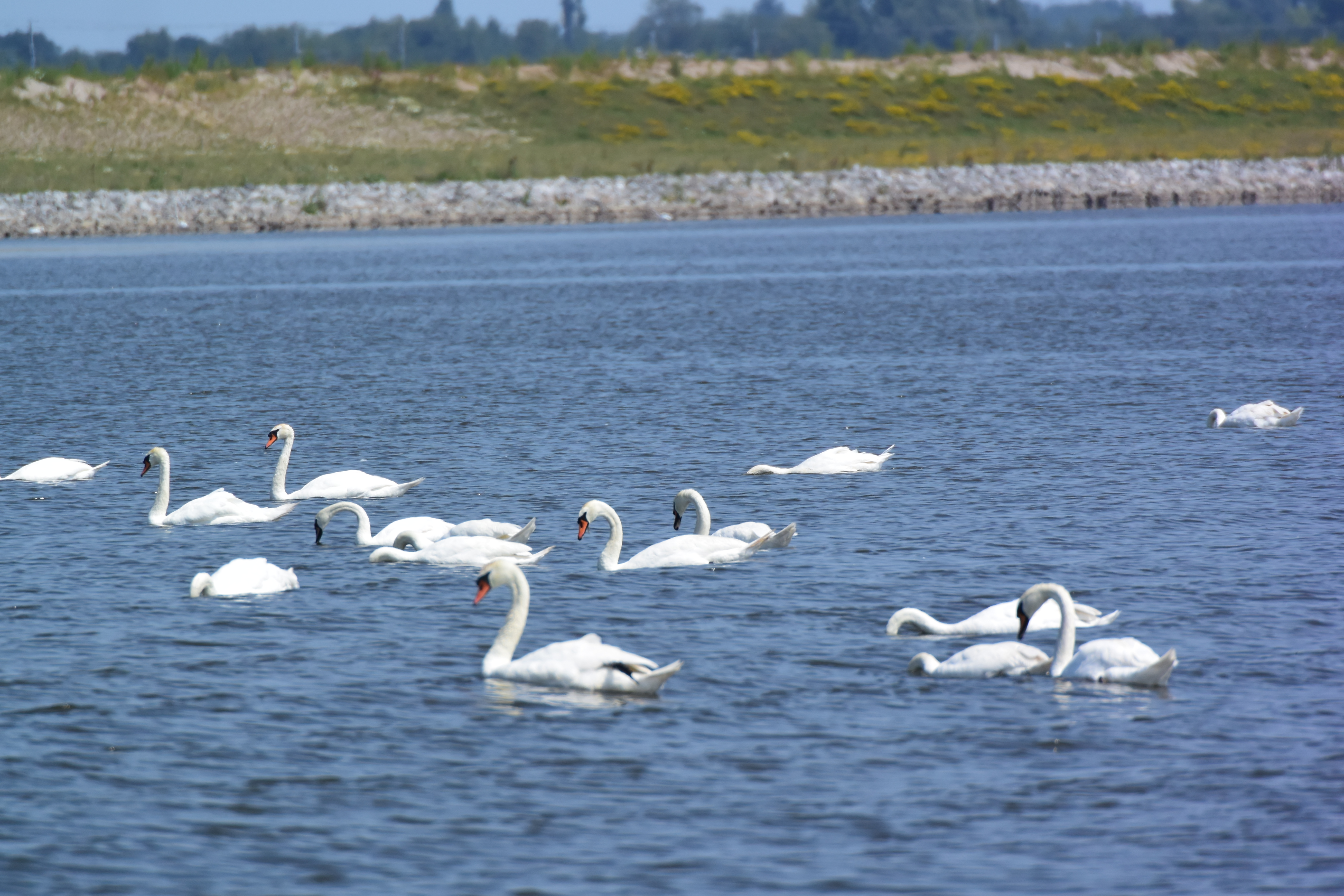 Aus Groningen raus ist kräftiger Frachterverkehr. Es ist jedoch nur eine kleine Strecke, dann biegen wir Richtung Zuidlaarder Meer ab. Schlagartig sind wir allein. Rüber übern See und an der Ausfahrt kümmern wir uns um die notwendige „Passage“ von Leinewijk bis Bareveld. Punkt eins sind nicht nur die üblichen zwei Begleiter da, heute sind es drei.