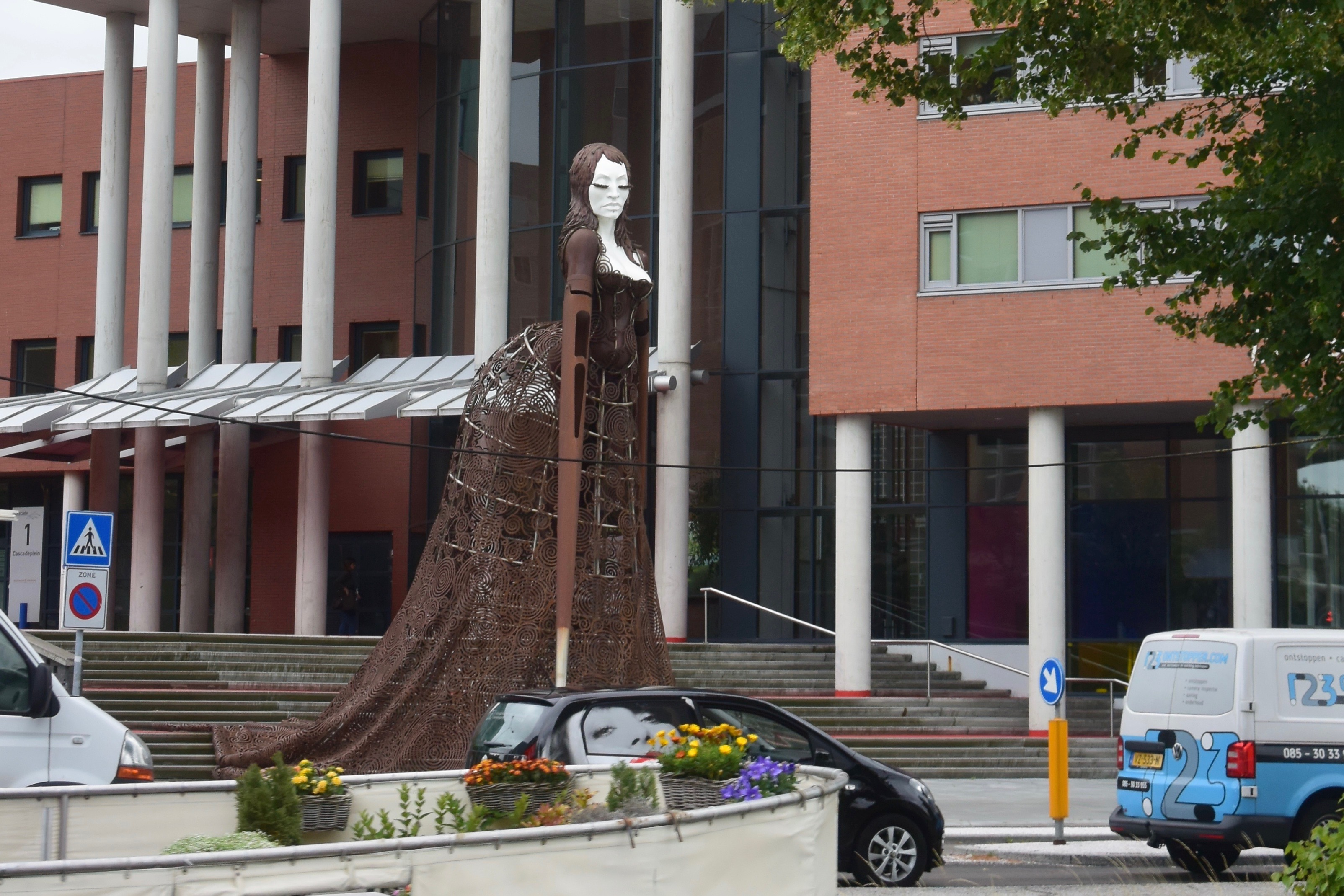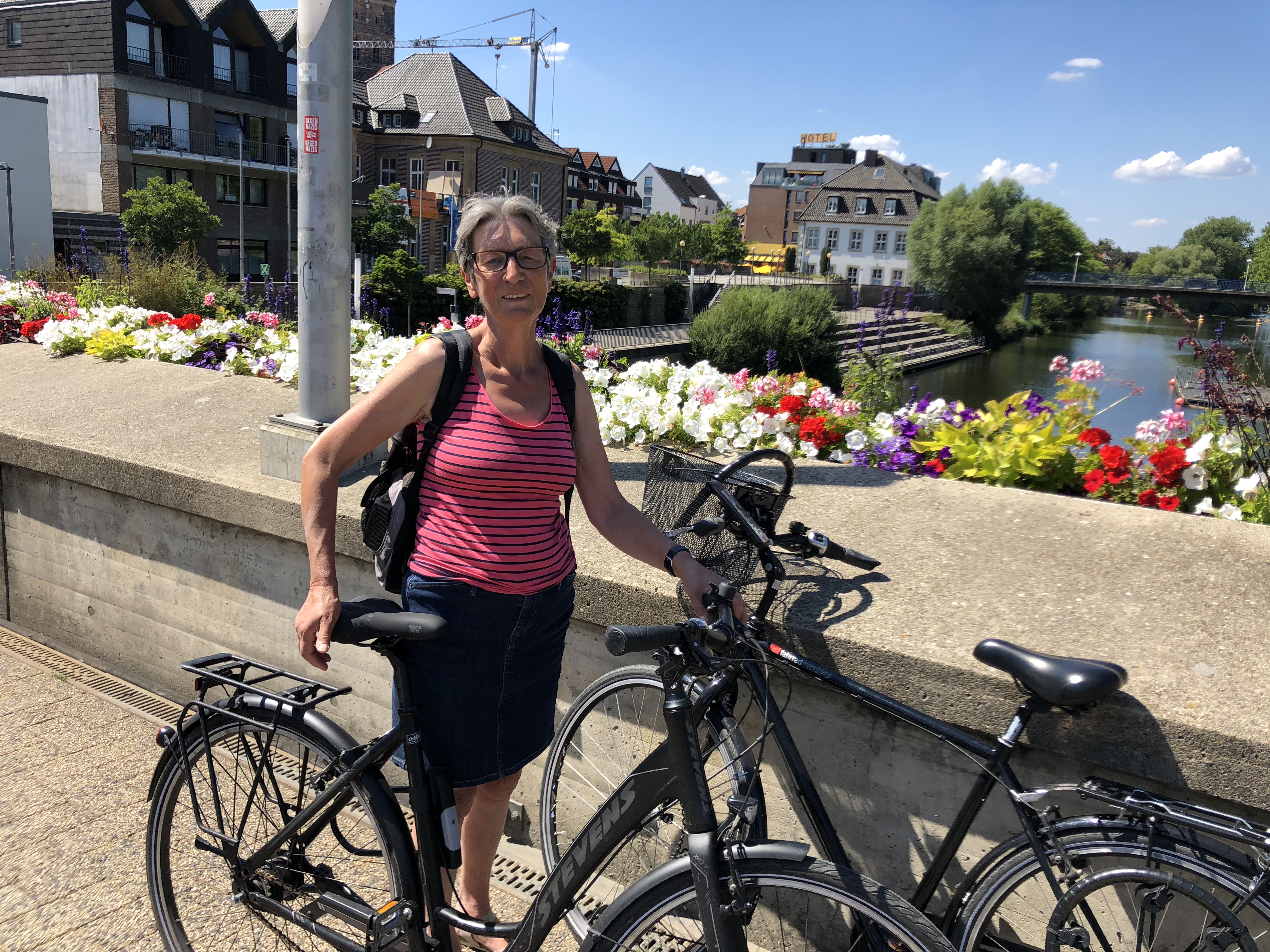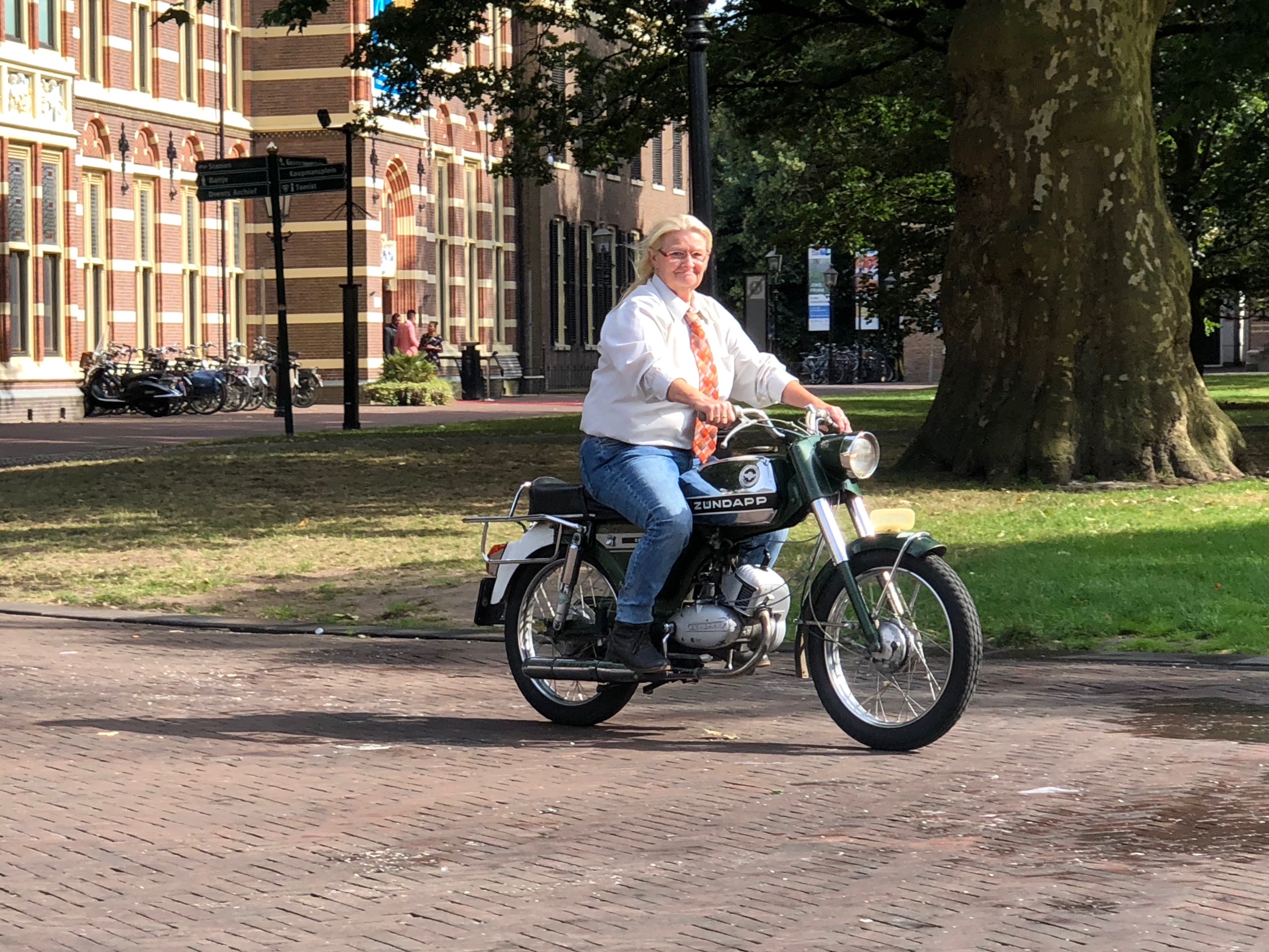 Mit dem Fahrrad kommen wir sicher durch die Stadt. Zwar müssen sich Fahrräder und Kleinroller und -mopeds den Radweg teilen. Nahezu alle fahren ordentlich und wenn nicht, achten sie zumindest auf andere. Fahrradhelme sind weit und breit nicht zu sehen. Es herrscht eine sehr hohe Rücksichtnahme (wie wir es schon in Groningen erlebt haben). Kampfradler sind uns noch nicht begegnet. Dafür ungewöhnlich viele Rennradfahrer und … DHL mit Lastenfahrrädern.