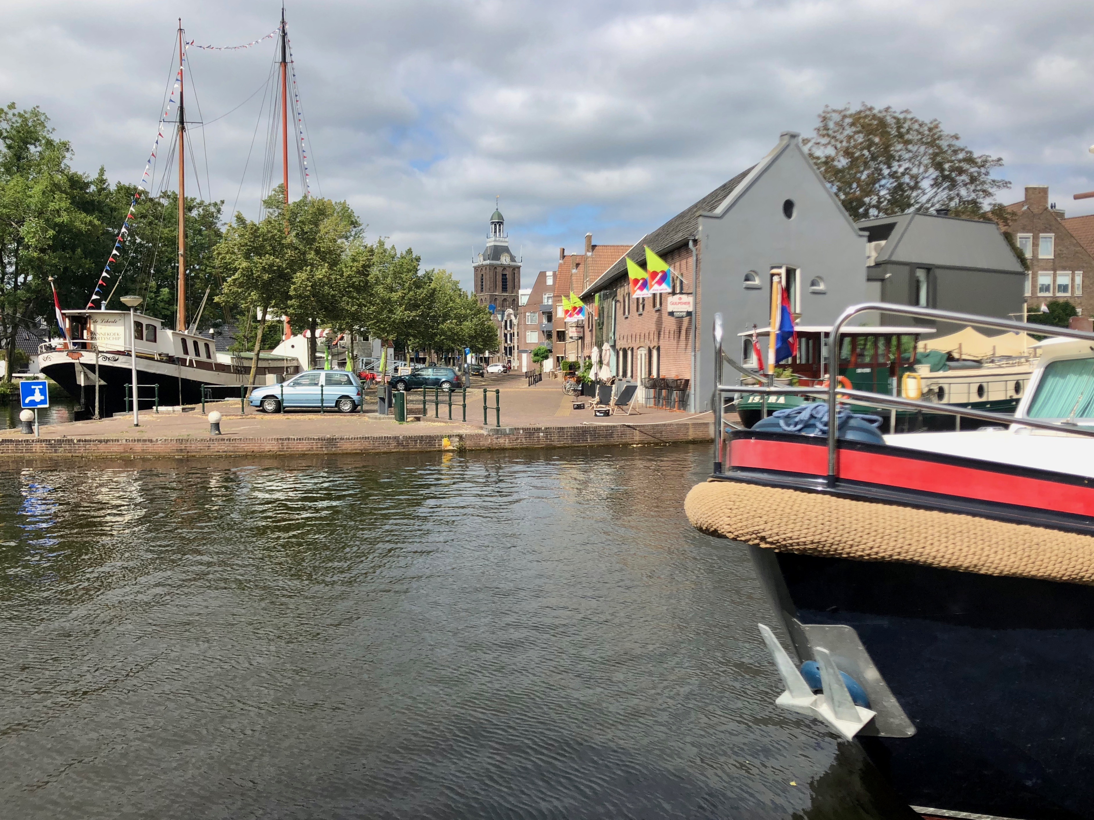 Assen, Hauptstadt der Provinz Drenthe, 68.000 Einwohner und u. a. als Austragungsort der niederländischen Motorrad-Weltmeisterschaft bekannt. Wir erreichen Assen mal gerade so eine halbe Stunde vor 17 Uhr (die magische Zeit, zu der fast alles, was interessant ist, schließt). Also auch die letzten Brücken. Aber der Liegeplatz ist ein Hammer. Mitten im alten Zentrum. Schnell zum Havenkantoor und ein kurzer Spaziergang durch den alten Stadtkern. Da wird es wohl morgen noch einiges zu entdecken geben.