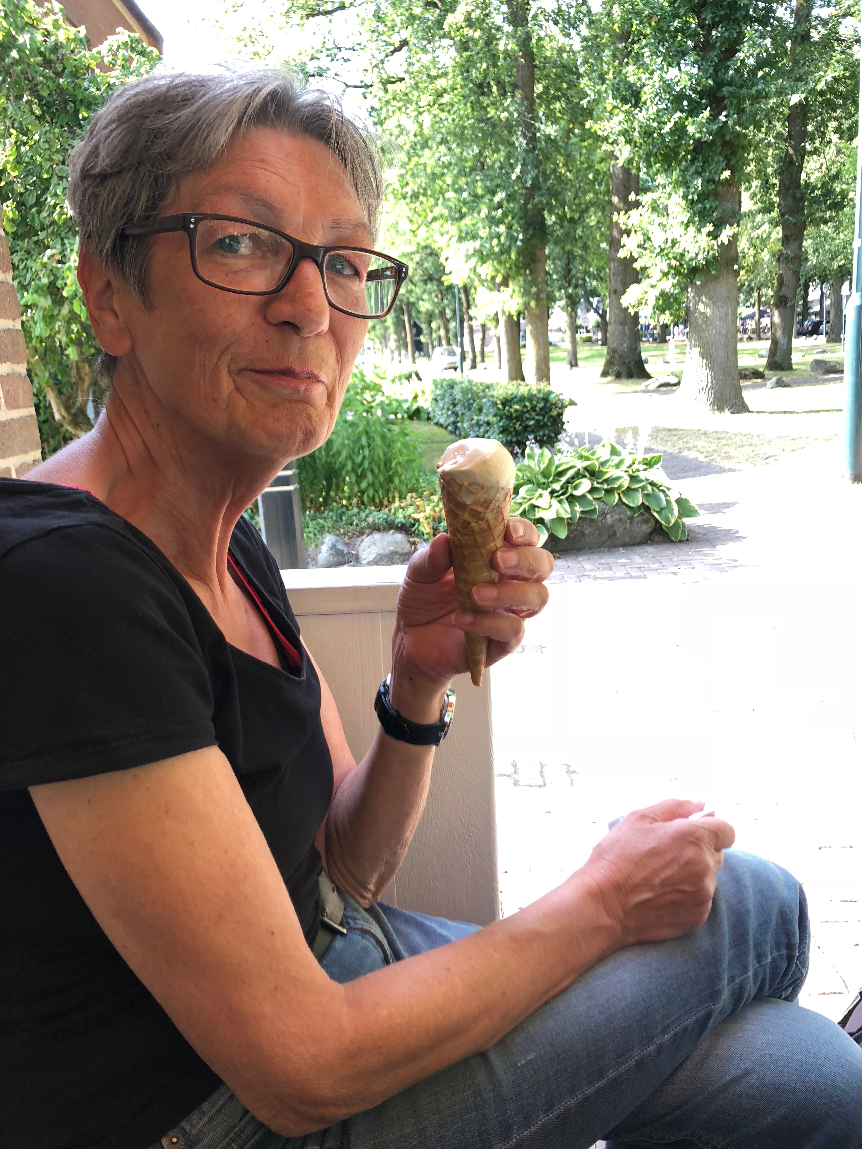 Lange schlafen, duschen, rumtrödeln. Nachmittags ein bisschen aufs Rad. Überraschend etwas einkaufen (tatsächlich am Sonntagnachmittag in der Kleinstadt), Eis essen – sonst nischt. Tut gut!