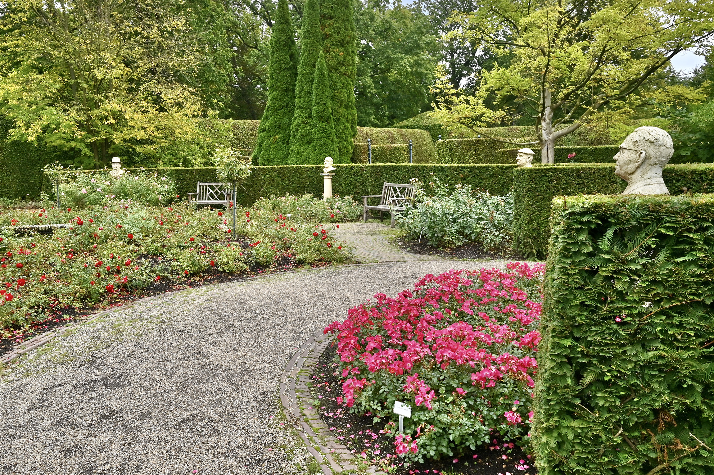 Im Schatten des Schlosses befindet sich der Rhododendrongarten mit einer beeindruckenden Rhododendron-Kollektion. Das barocke Rosarium ist mit seinen 10 thematisierten Rosengärten mit über 8.000 Rosen das Highlight im Schlosspark. Schlendert man durch den Bambuswald und den Asiatischen Wassergarten, fühlt man sich nach Südost-Asien versetzt. Im subtropischen Gewächshaus Casa Verde findet man u. a. Feigenbäume, Palmen und Kaktusse. Kleinere Themengärten wie der Italienische Garten, der Japanische Garten oder der Gemüse- und Kräutergarten sind mit viel Liebe zum Detail angelegt.