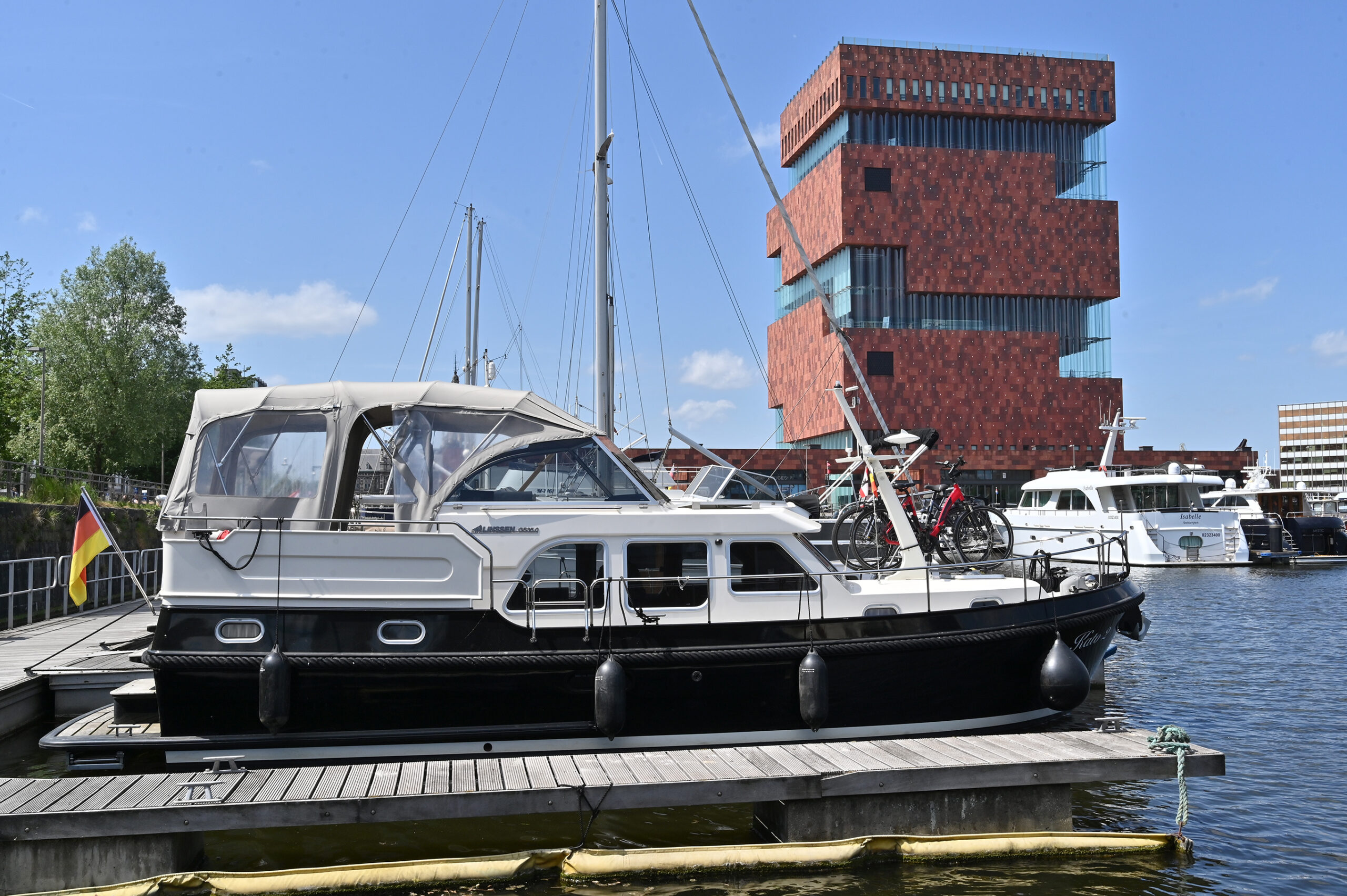 Kurz nach 13 Uhr melden wir uns für die nächsten sechs Tage im Hafenmeisterbüro an. Die Räder kommen von Bord genommen und wir touren völlig entspannt bei strahlendem Sonnenschein durch Antwerpen.