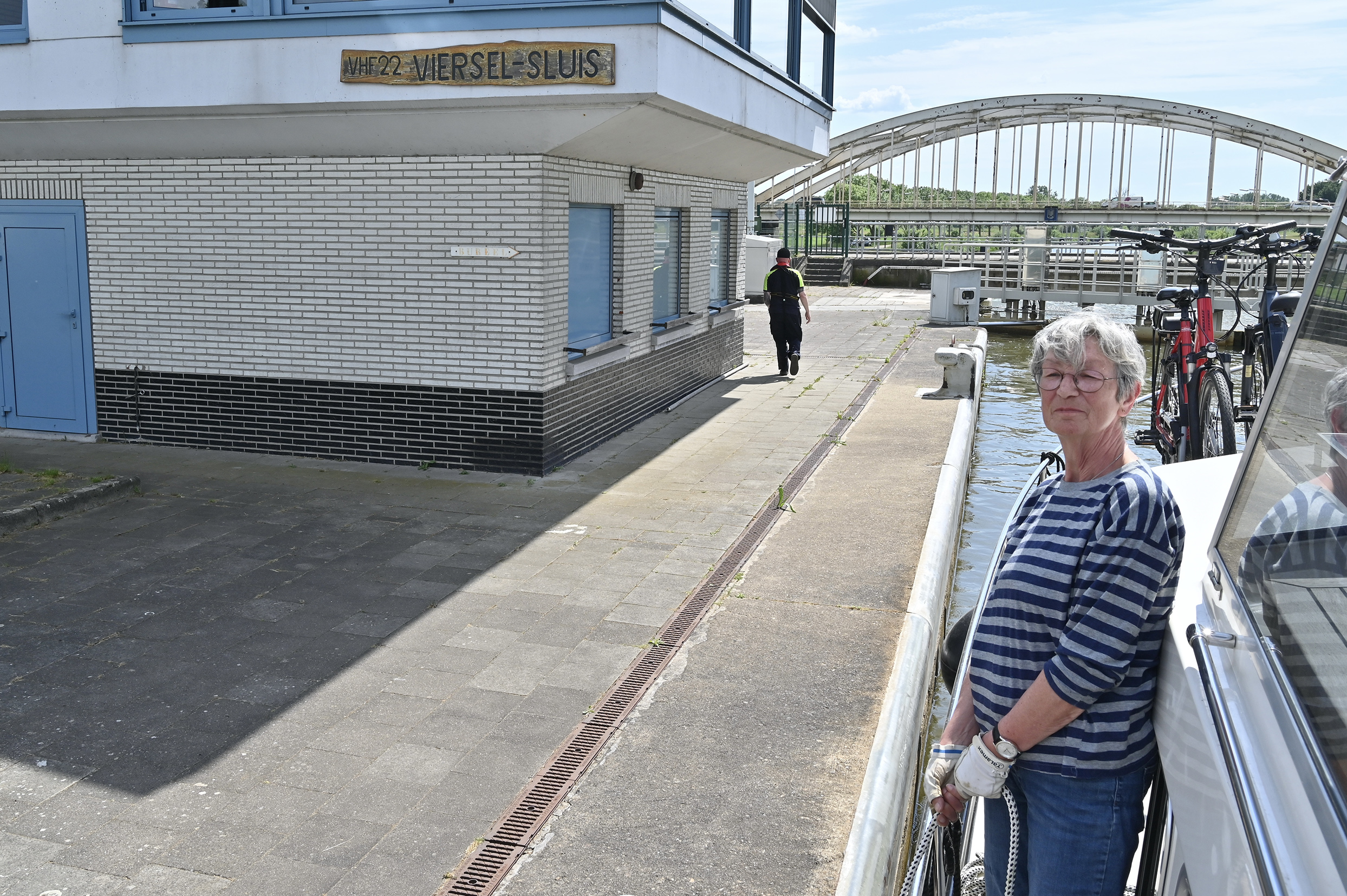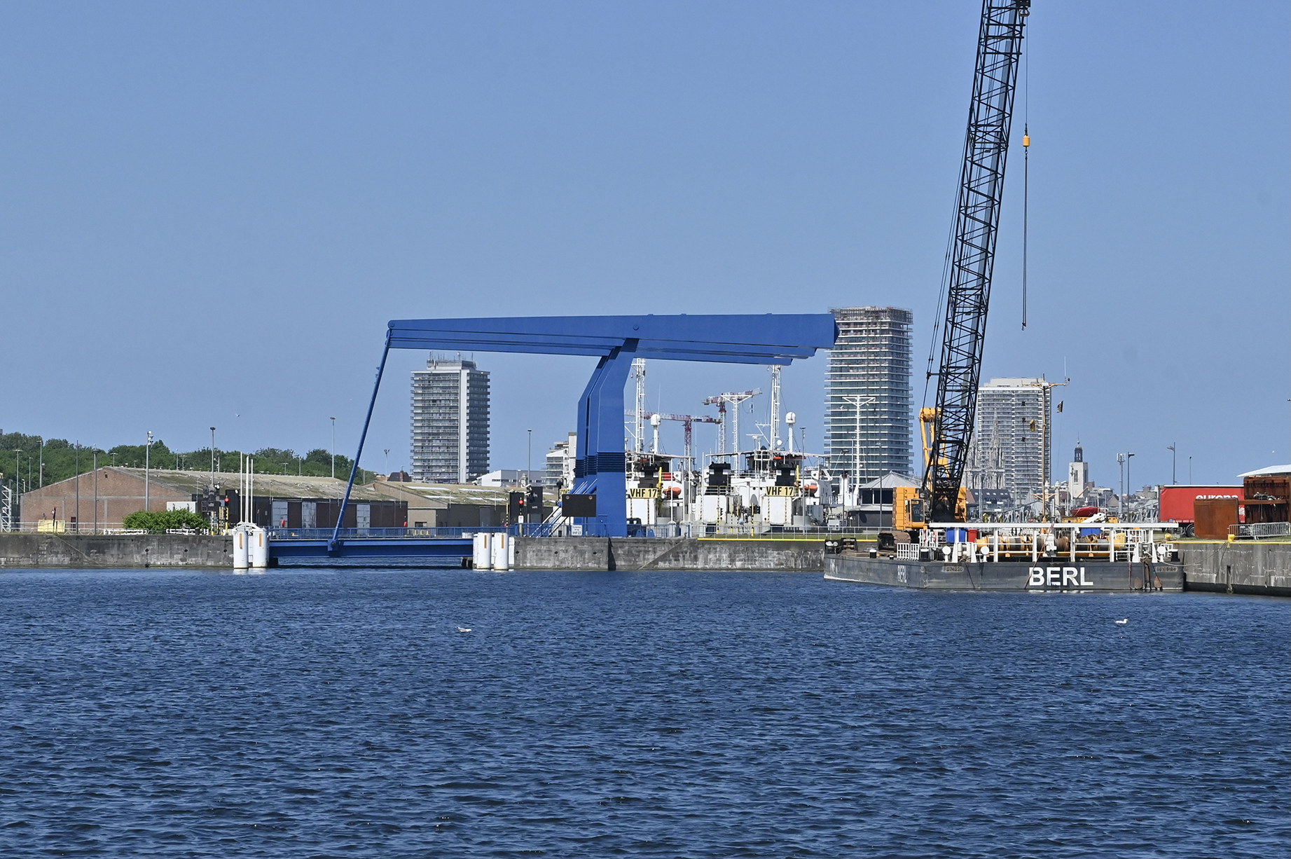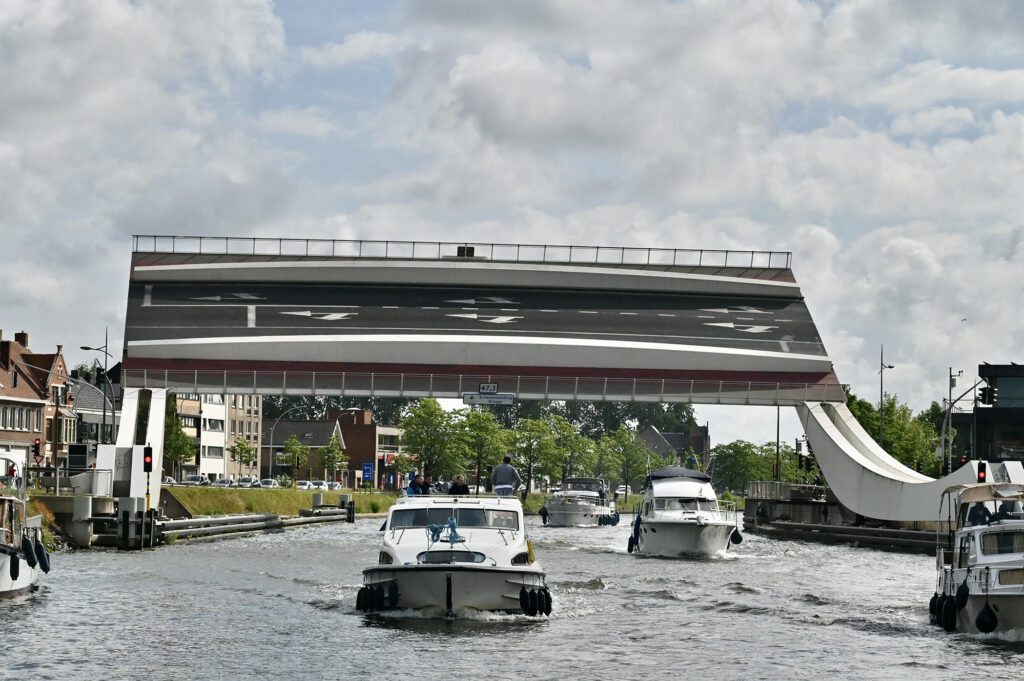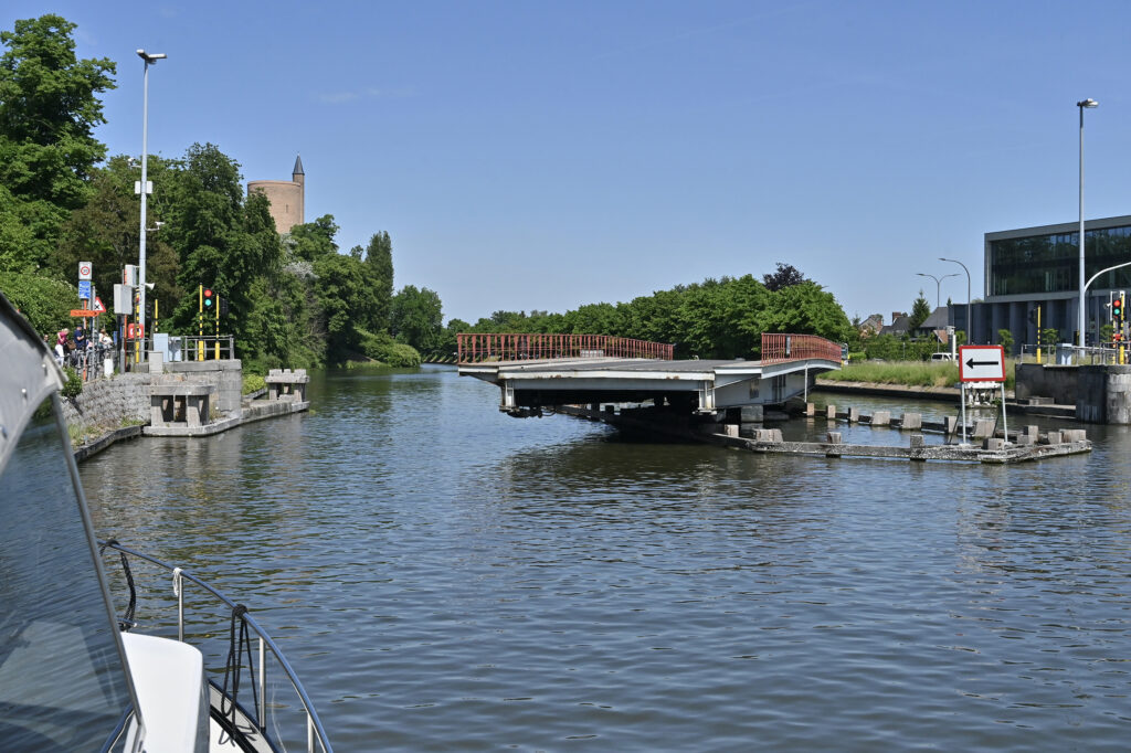 Ab der ersten Schleuse sammeln sich alle Boote und ein Frachter. Alle zusammen geht es in die Kammer. Danach ist bis zum Abzweig Nieuwpoort Kettenfahrt angesagt. Nach Oostende wollen nur wir. Bis zur Marina sind es dann nur noch sechs Kilometer. Die Kommunikation an den Brücken ist sehr einseitig. Auf unsere Anfrage wird nicht geantwortet, aber reagiert.