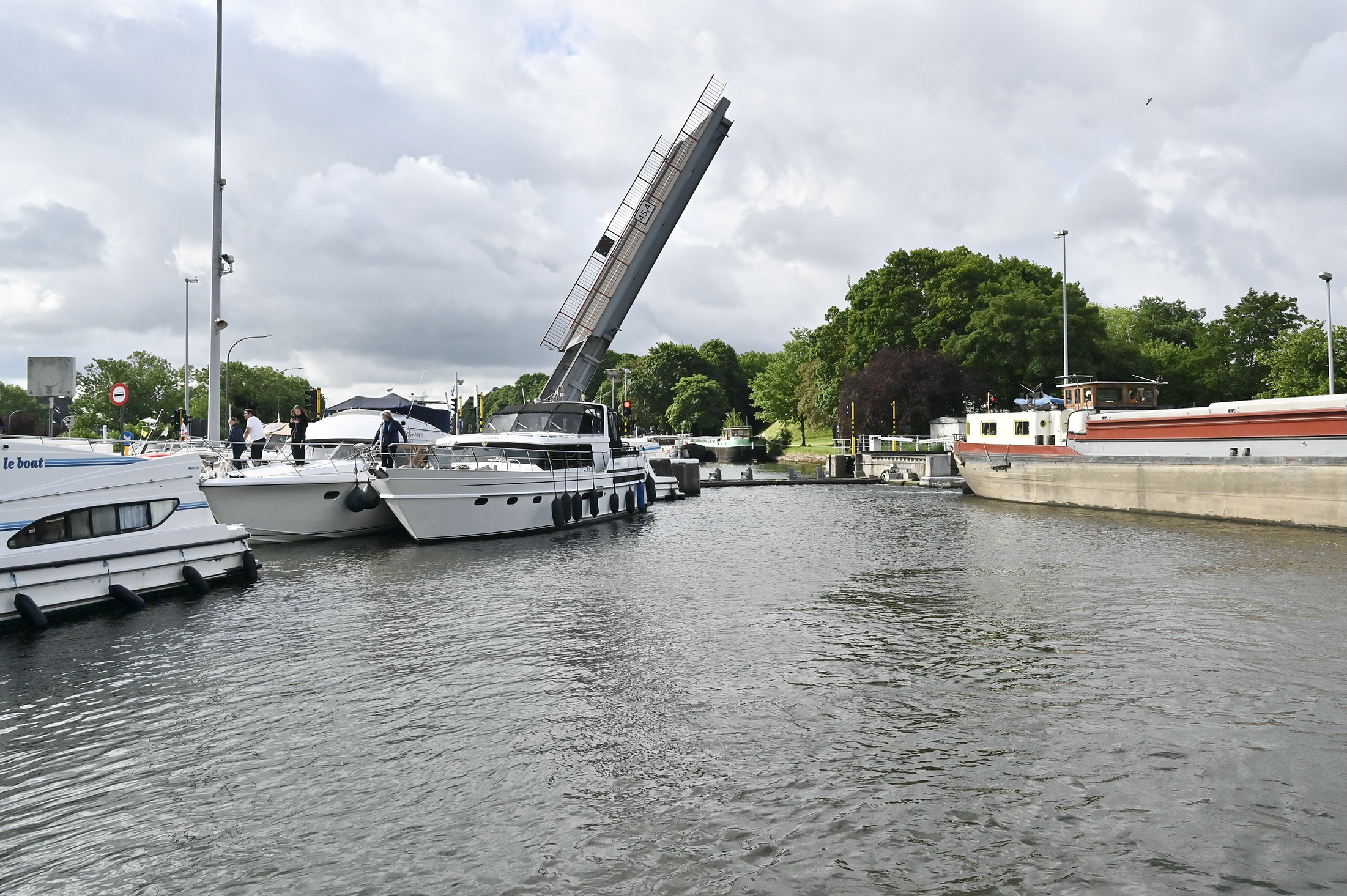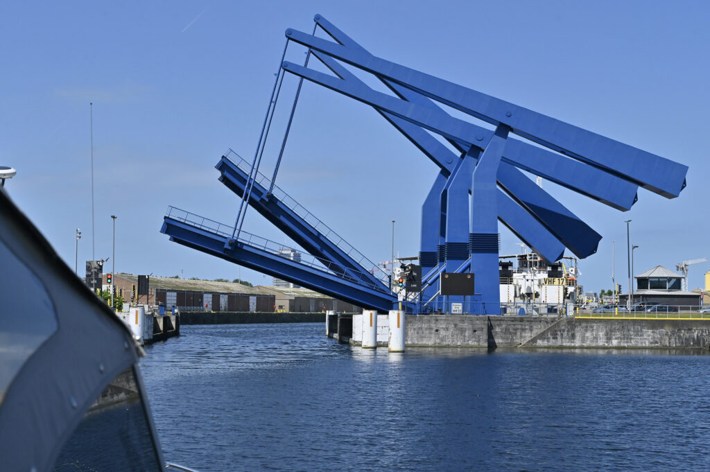 Allerdings, die gestrige „Gewalttour“zahlt sich aus. Heute, Mittwoch, ist der relativ kleine Rest bis zum Zielhafen Antwerpen Willemdok schnell gemacht. Nach der letzten Schleuse (Wijnegem) melden wir uns telefonisch beim Hafenmeister an. Er fragt, wo wir sind und meint, in etwa einer Stunde stehen wir vor der Siberiabrug, die uns mit der nachfolgenden Londenbrug den Zugang zum Hafen ermöglicht.