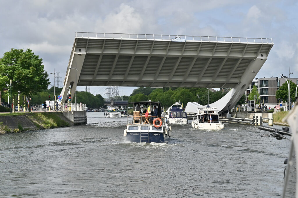 Dendermonde erreichen wir gegen 16.00 Uhr. Die vor uns liegende Strecke beträgt jetzt noch 65 km bis Gent. Die Flutunterstützung hält sich in Grenzen bleibt aber relativ konstant. Mit spritsparenden 1.800 U/m geht es mit 12 bis 13 km/h weiter. Gegen 21.00 Uhr sind wir durch die Schleuse Merelbeke.