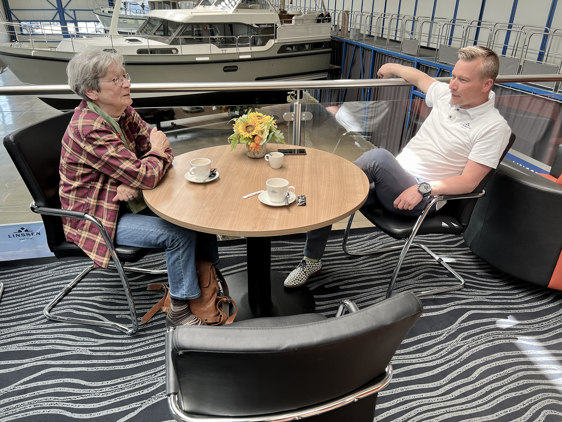 Von Rennie hören wir, dass Linssen mit drastischen Einkaufs-Preiserhöhungen und unterbrochenen Lieferketten zu kämpfen hat. Dem Showroom sieht man es sofort an. Statt der sonst üblichen bis zu 15 Ausstellungsschiffen stehen dort aktuell nur kümmerliche zwei (die ebenfalls bereits verkauft sind). Neue Schiffe können nicht mehr mit einer Preisgarantie zum Auslieferzeitpunkt angeboten werden (idR. je nach Größe und Ausstattung mit einer Bauzeit von ca. 12 bis 24 Monate). Fakt ist schon jetzt, unsere Kato 2 würde bereits heute schon satte 35 % mehr kosten als 2019. Keine schönen Aussichten!