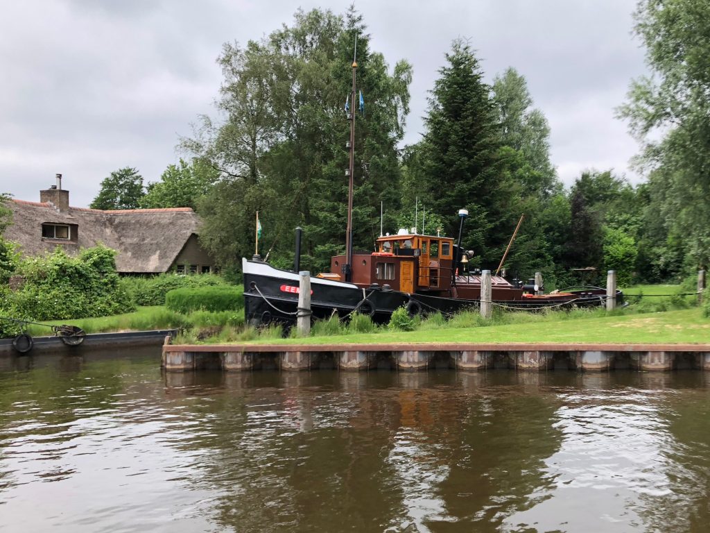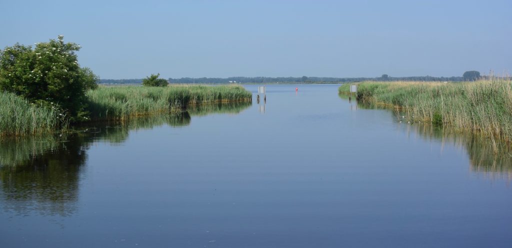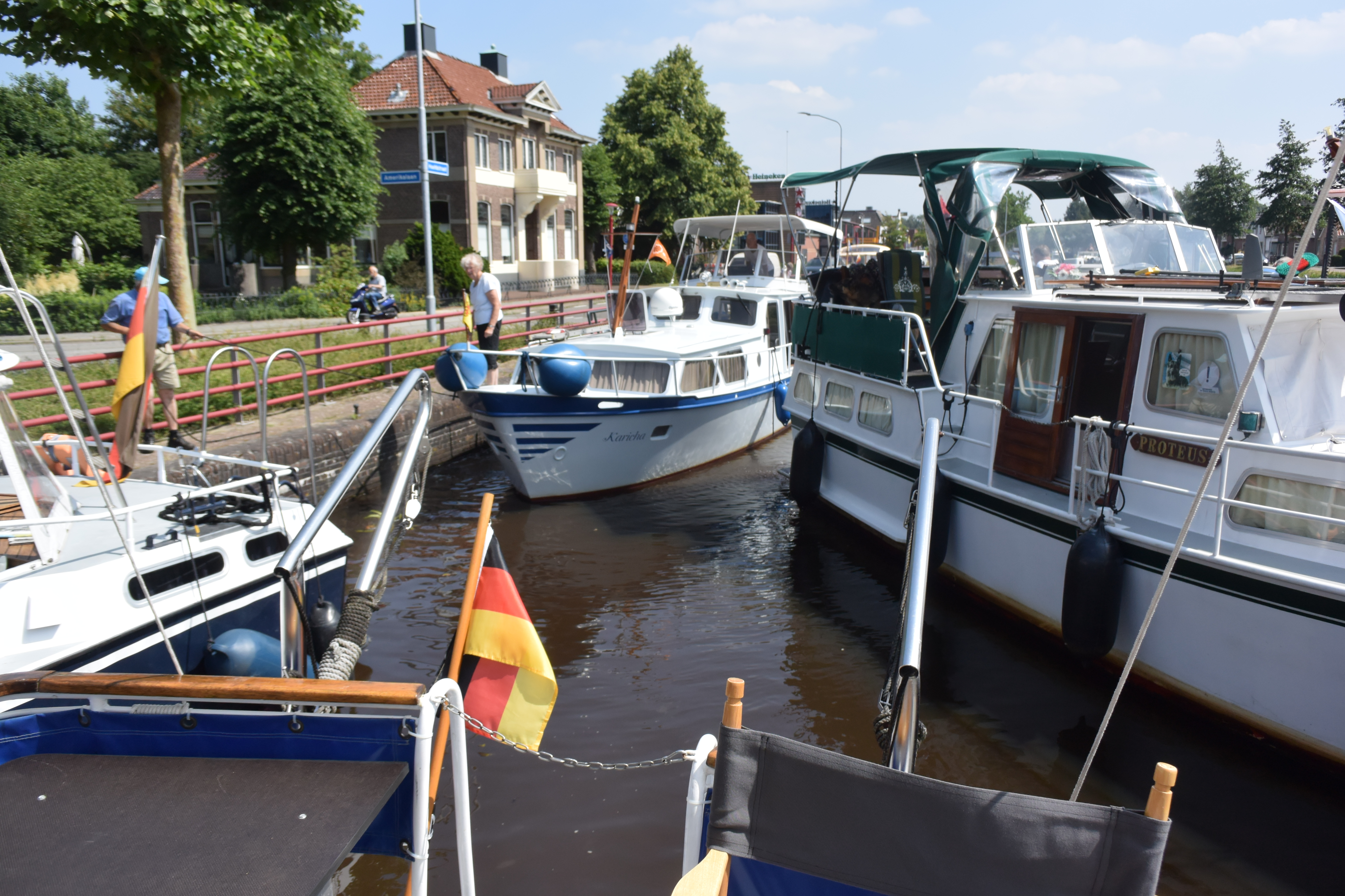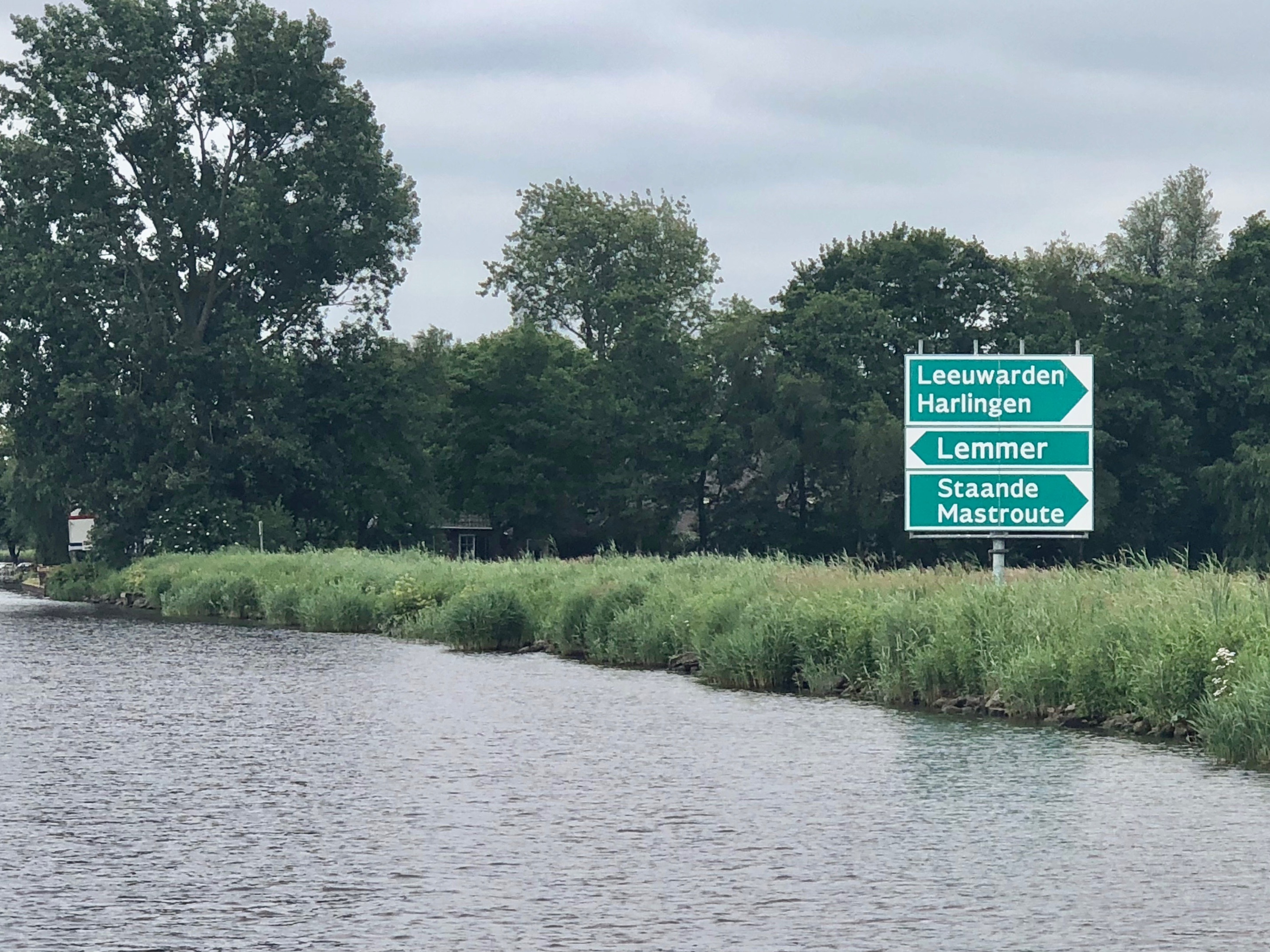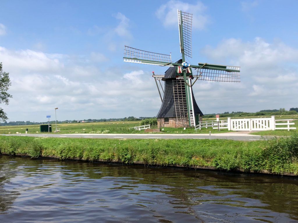 Uns teilen sich zwei der drei Schleusenwärter zu und ab geht die Lucy! Drei Stunden sind die beiden jetzt unsere Begleiter. Das war uns fast schon unangenehm, derart aufwändig (und kostenfrei) umsorgt zu werden; 26 Brücken, gut gemixt zwischen manuellen und elektrischen Brücken und 2 kleinen Schleusen. An den Schleusen ist ein kleiner Schnack möglich, aber aufgrund der jeweils nicht vorhandenen Sprachkenntnisse doch recht übersichtlich. Während der erste Schleusenwärter in Aktion ist, fährt der andere schon mal eine Brücke weiter und öffnet sie für unsere nahezu stoppfreie Durchfahrt. Aber, wie schon gesagt, bei 6 km/h, bleibt es eine absolut entschleunigte Reise. Wir passieren beidseitig recht dichte Reihen mit direkt am Kanal stehenden Häusern. Ab und zu von einer kleinen Kirche unterbrochen. Hinter den Häusern sind Wiesen und Felder. Sonst nichts. Am Ende der Tour entlassen uns unsere beiden Begleiter mit einem Übersichtblatt vom Zuidlaardermeer (betonnte Fahrrinnen, da sehr flach) und guten Wünschen.