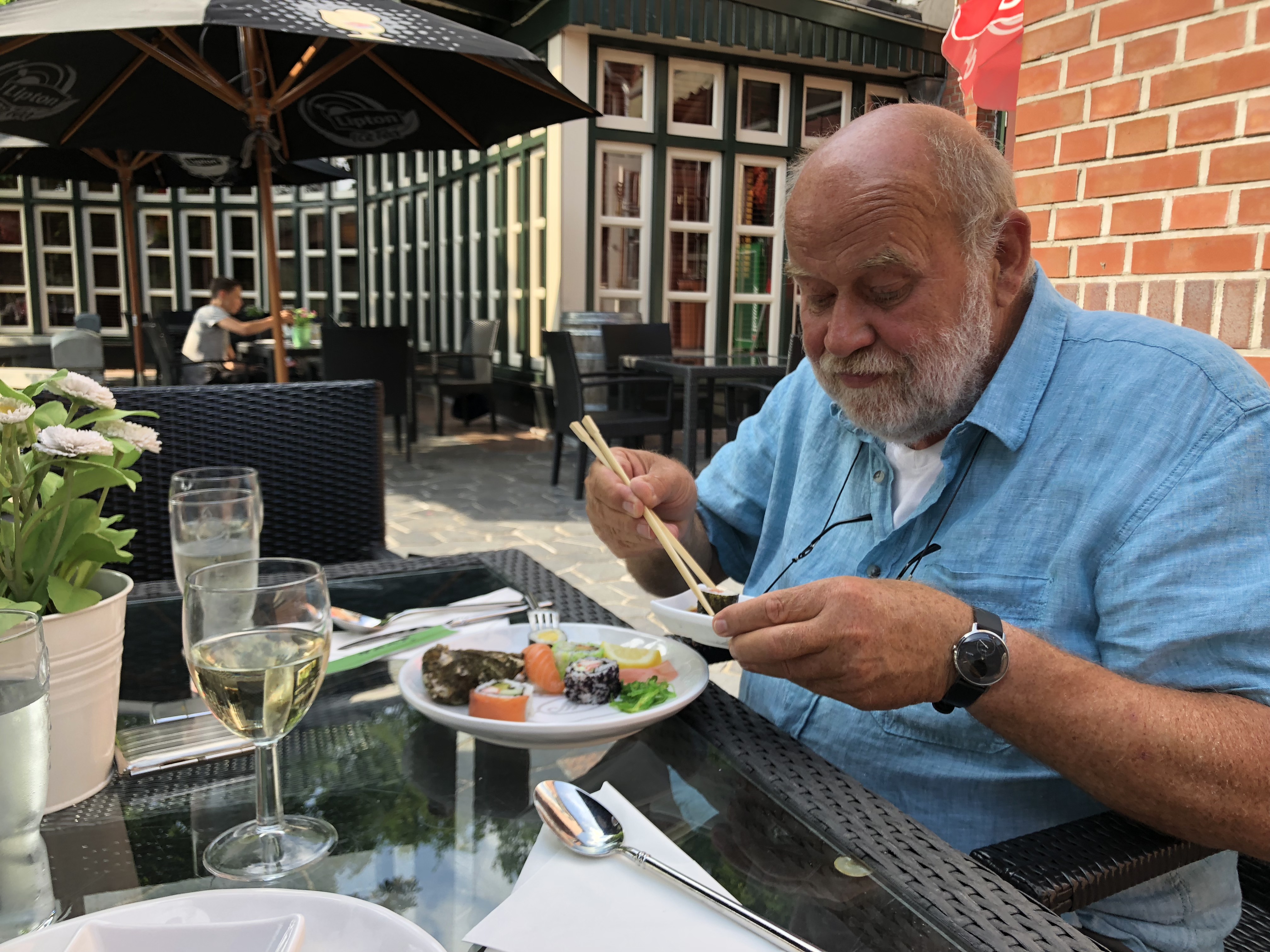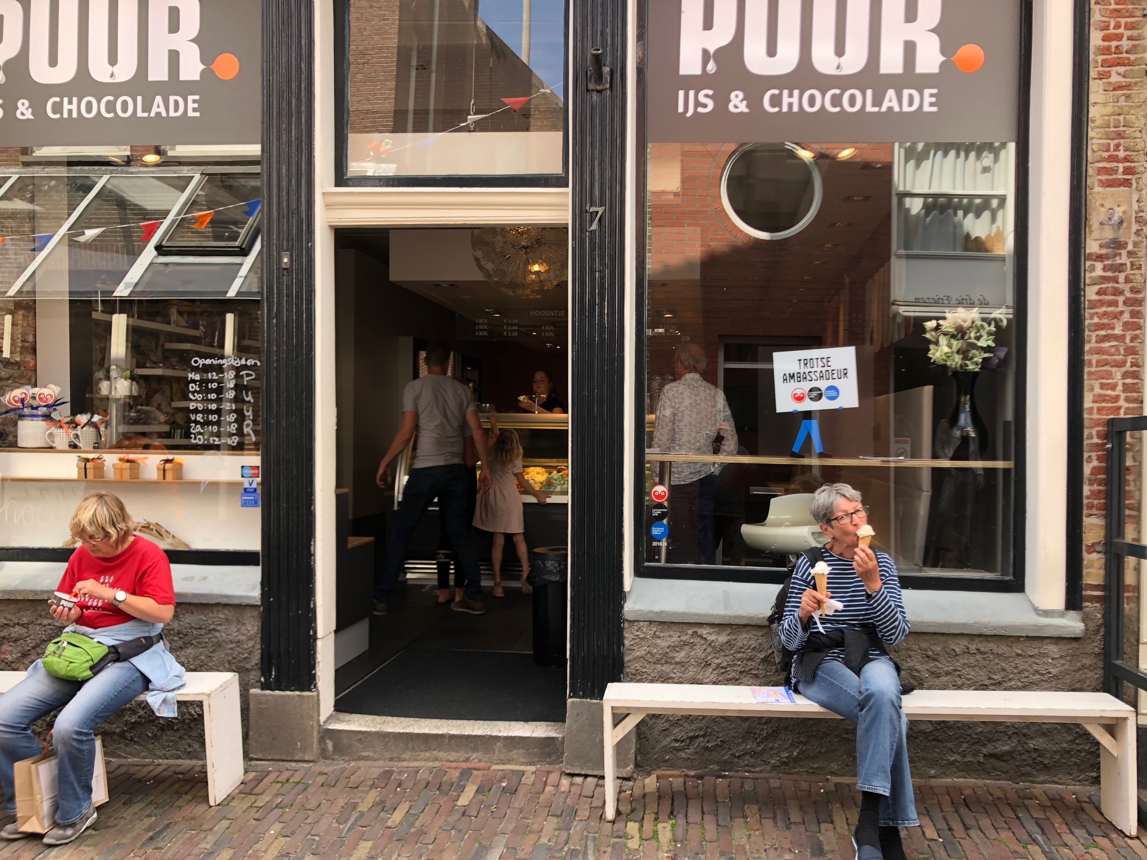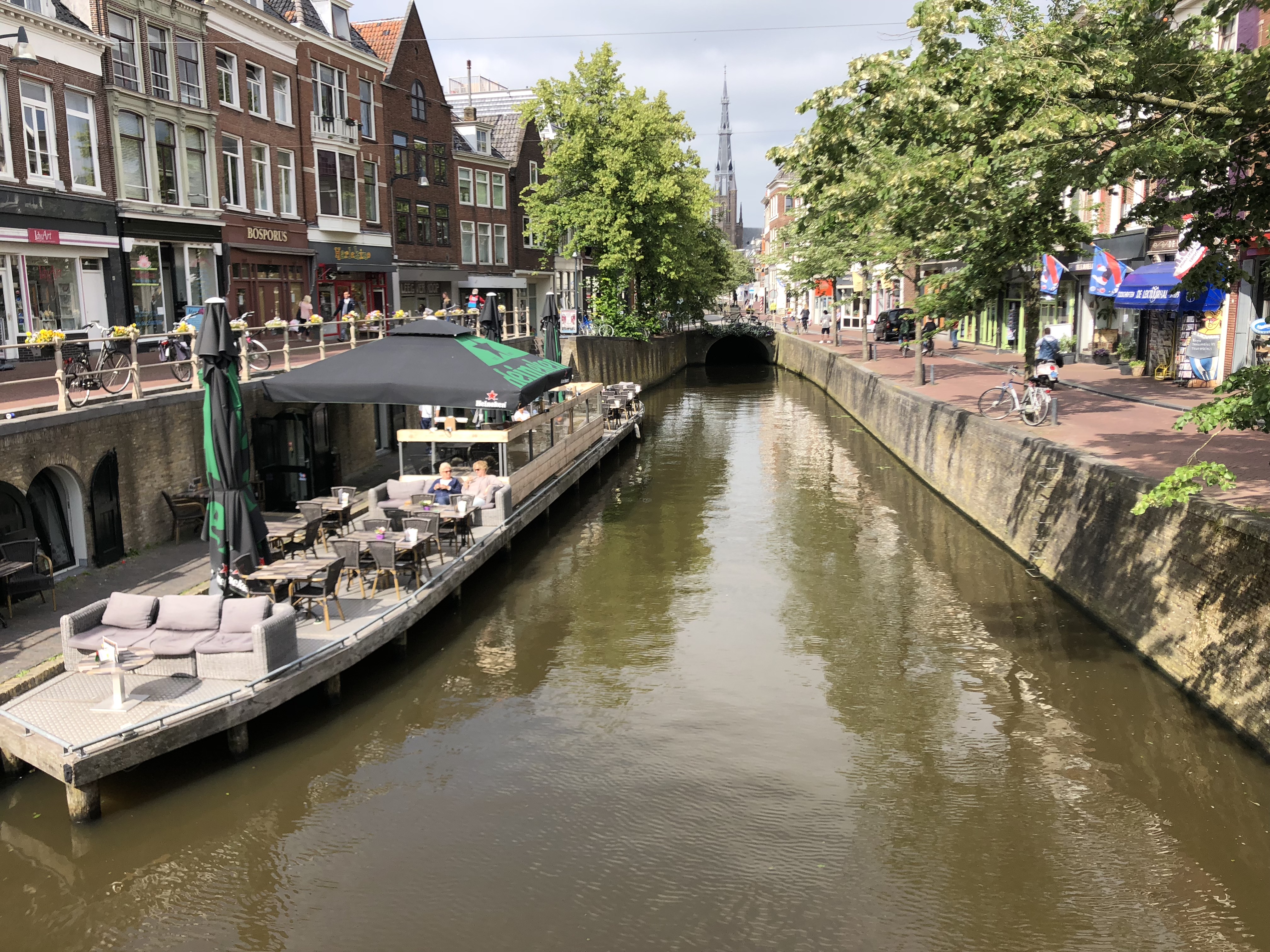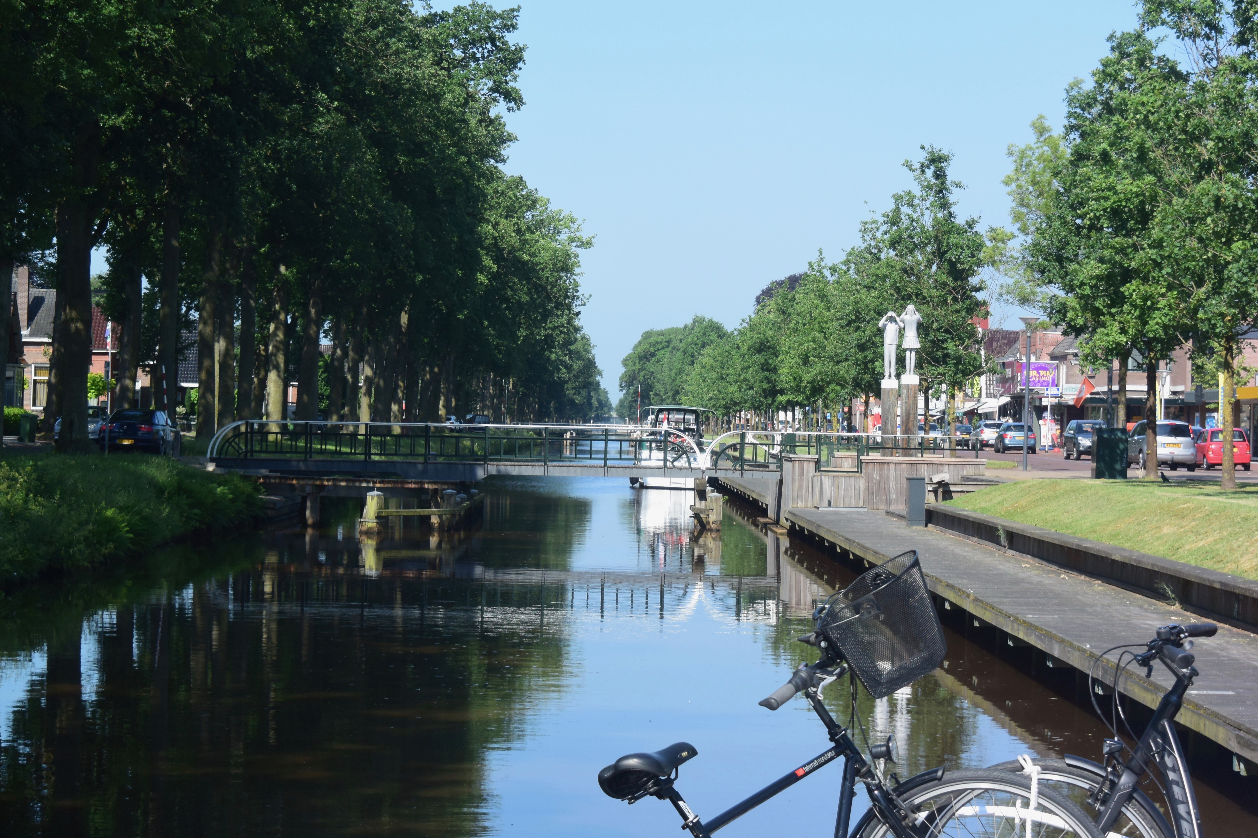 Uns teilen sich zwei der drei Schleusenwärter zu und ab geht die Lucy! Drei Stunden sind die beiden jetzt unsere Begleiter. Das war uns fast schon unangenehm, derart aufwändig (und kostenfrei) umsorgt zu werden; 26 Brücken, gut gemixt zwischen manuellen und elektrischen Brücken und 2 kleinen Schleusen. An den Schleusen ist ein kleiner Schnack möglich, aber aufgrund der jeweils nicht vorhandenen Sprachkenntnisse doch recht übersichtlich. Während der erste Schleusenwärter in Aktion ist, fährt der andere schon mal eine Brücke weiter und öffnet sie für unsere nahezu stoppfreie Durchfahrt. Aber, wie schon gesagt, bei 6 km/h, bleibt es eine absolut entschleunigte Reise. Wir passieren beidseitig recht dichte Reihen mit direkt am Kanal stehenden Häusern. Ab und zu von einer kleinen Kirche unterbrochen. Hinter den Häusern sind Wiesen und Felder. Sonst nichts. Am Ende der Tour entlassen uns unsere beiden Begleiter mit einem Übersichtblatt vom Zuidlaardermeer (betonnte Fahrrinnen, da sehr flach) und guten Wünschen.